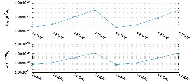 ・ Electron diffusion coefficient (De) and mobility (μ) inside the insulator
